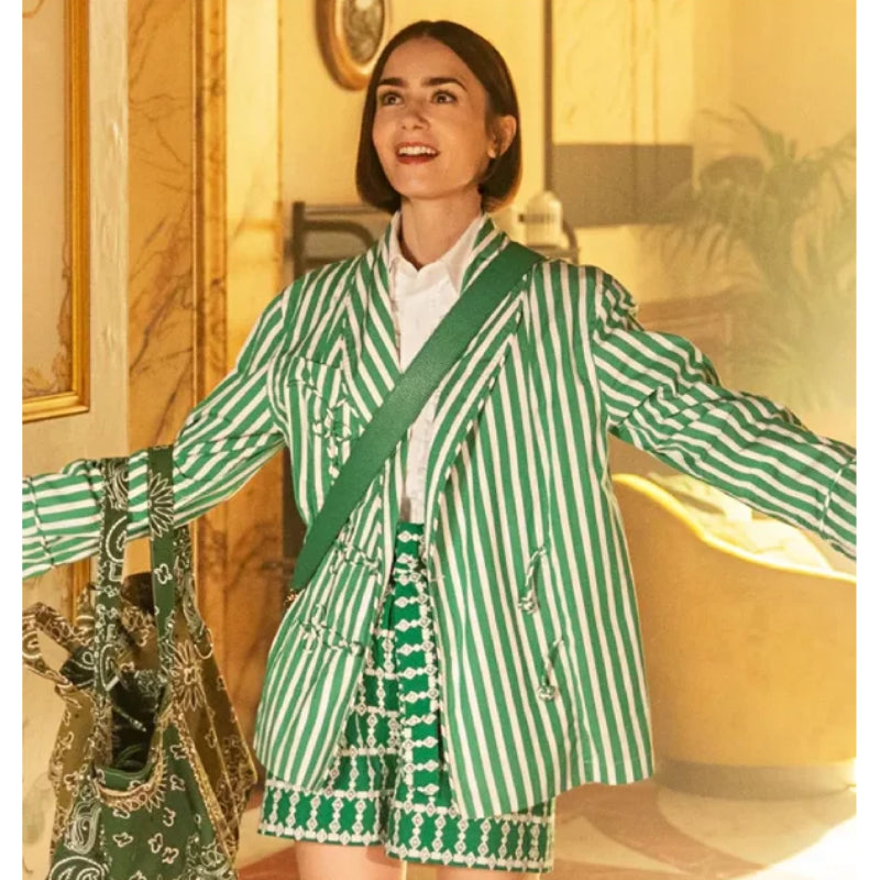 Lily Collins Emily In Paris S05 Emily Cooper Green Striped Blazer
