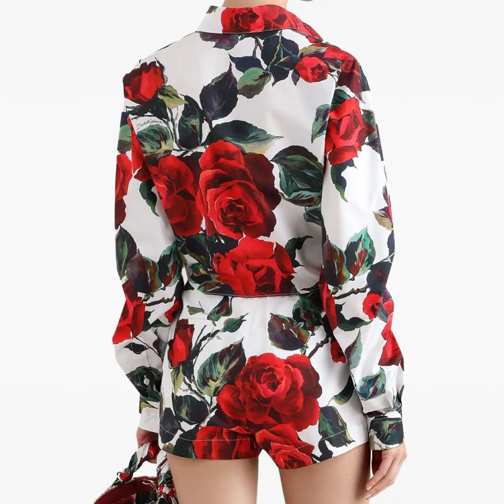 - Striking Floral Print: Features a gorgeous, high-contrast red rose print against a crisp white background, giving it a dramatic and luxurious feel (often associated with Italian high fashion).