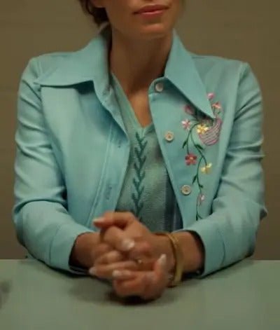 Jessica Biel TV Mini Series Candy 2022 Biel Light Blue Wool Jacket